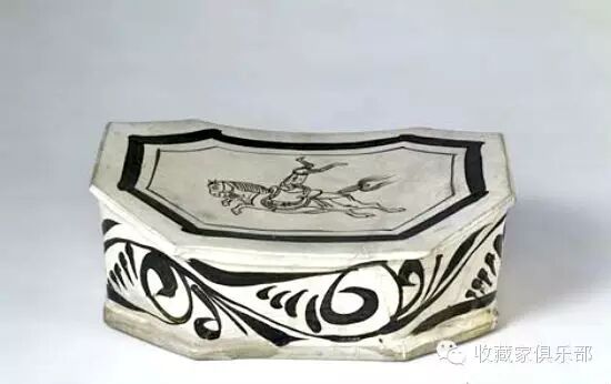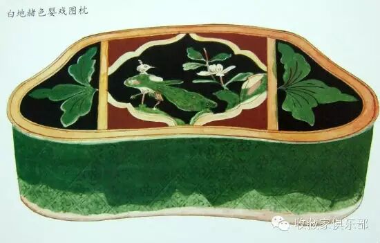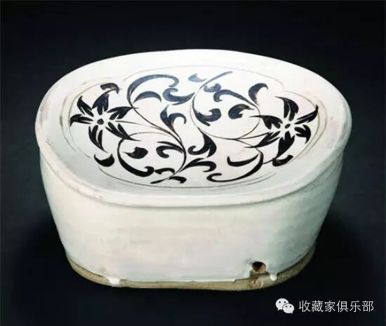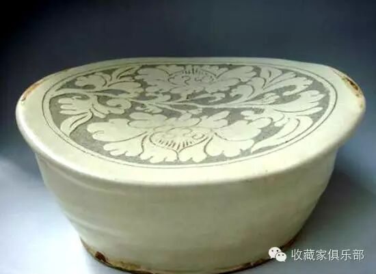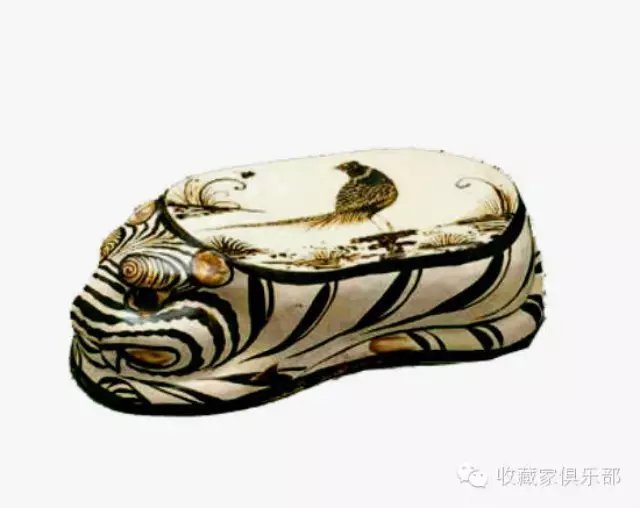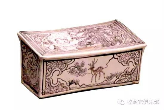 瓷枕始見於隋代,唐代以後開始大量生產,並逐漸成為人們喜愛的夏日乘涼的床上枕具。到了兩宋及金、元時期,瓷枕的發展進入繁榮期,產地遍及南北。同時在裝飾技法上也有很大的發展,刻、劃、剔、印、堆塑等技法被紛紛採用,極大地豐富了瓷枕的表現力和藝術性。古人認為,瓷枕有“清涼沁膚、爽身安神”的作用。古代瓷枕的品種複雜多樣,南北方各大名窯都有燒製,以宋代的藝術成就最高。宋代以磁州窯、曲陽定窯、扒村窯、當陽峪窯、登封窯所出瓷枕為多。其中尤以河北磁州窯和曲陽定窯的產品最負盛名。磁州窯瓷枕富有時代特色,文化內涵豐富,瓷枕形狀多姿多彩,有長方形、腰圓形、半月形、雞心形、四方形、六角形、八方形、橢圓形、銀錠形……也有塑成嬰孩、臥女等人物形,臥虎、臥龍、雙獅、壽龜等寫實形以及雕鏤成宮殿、戲台等建築形。其造型精巧,製作細膩,令人嘆為觀止。