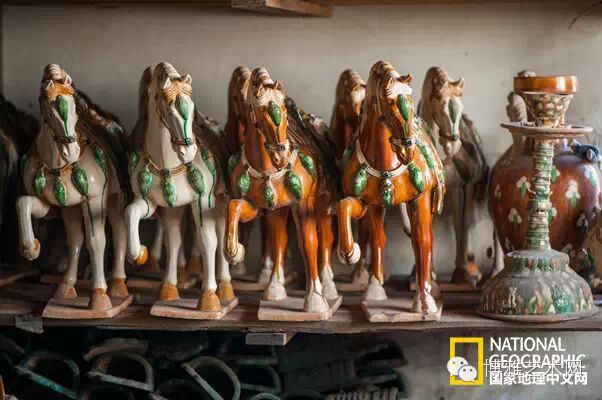 但在今天的洛陽,有一個叫作南石山村的地方,製作出的三彩陶卻足可媲美唐代。這座村莊就在唐三彩的發現地北邙山附近。1905年,幾個築路工人不小心鑿開了這裡的一座唐王室貴族墓穴,一批五顏六色的彩陶得以重見天日。這種彩陶越來越受到重視,特別是外國人的大量收購讓它們一時“洛陽紙貴”,從那個時候起,南石山村人就開始了仿製唐三彩的歷史。