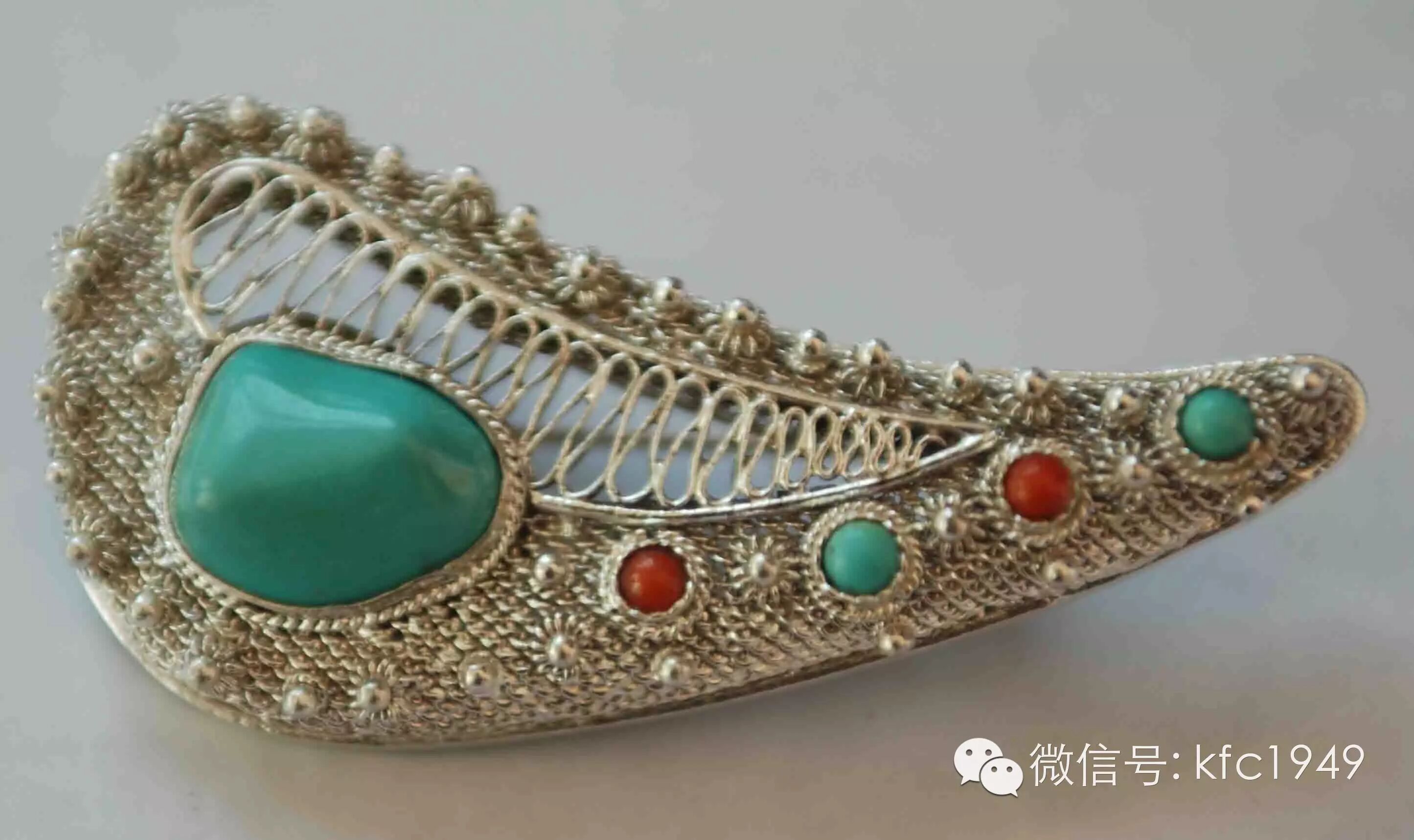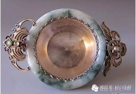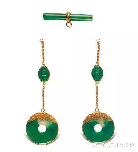 舊式鑲嵌首飾:翡翠戒指多為素馬鞍戒;其他首飾多以黃金鑲嵌,與現代首飾比,金屬所佔比重較大,多與珍珠、碧璽相配。