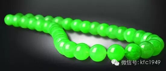 珠鍊和手鐲是翡翠首飾中價位最高的兩種,原因是這兩種飾物對原料的要求最高:原料要大,顏色要均勻一致,不能有綹裂、雜質。一粒戒面達到這種要求都不容易,何況一大塊翠料,所以極品的手鐲、珠鍊價格多在千萬元以上。