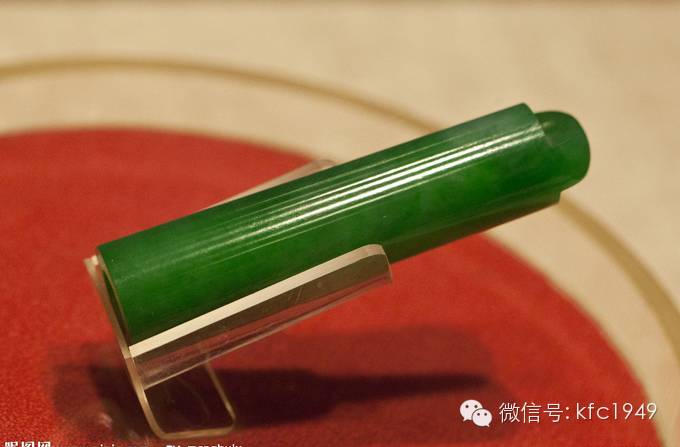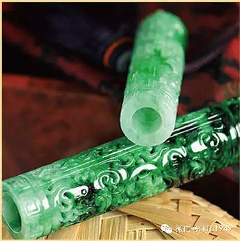 表槓:翡翠表槓中間常鑲一金扣,用來拴系懷錶,下邊有時還配翡翠表墜。好的翡翠表槓比懷錶要珍貴許多。故宮博物院亦收藏有成套翡翠表槓、表墜。