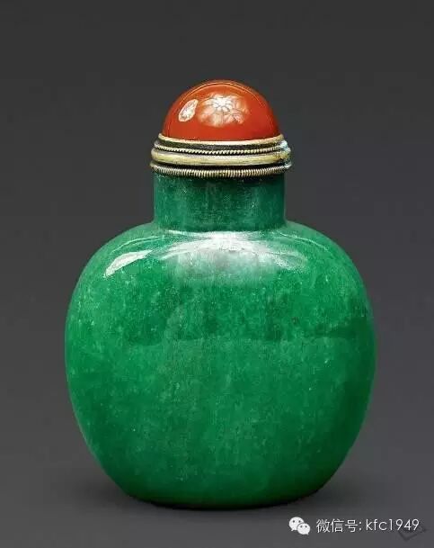 煙壺:翡翠煙壺是煙壺中比較特殊的品種,上好的原料配上上好的做工是能賣大價錢的。煙壺專場拍賣中常能看到壓軸兒的翡翠煙壺。