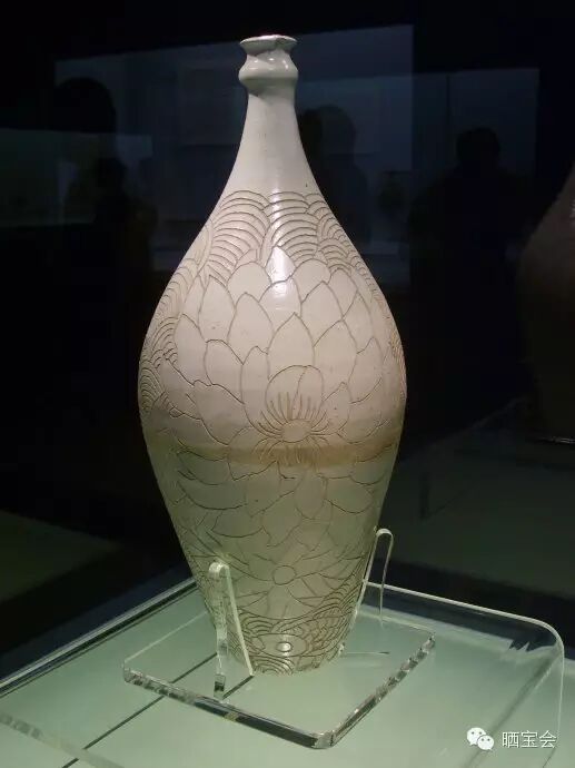 小口厚唇,好像大唐仕女?呵呵定窯“官”款白釉刻蓮瓣紋蓋盒五代(公元907-960)器、蓋外均施白釉,蓋內無釉,器身及蓋均飾刻花蓮瓣紋,底心刻有一“官”字。此罐層疊蓮瓣紋的裝飾手法,在五代至宋初較為流行。白釉劃花蓮魚紋瓶北宋(公元960-1127)李政道先生捐贈白釉蓮花口弦紋六管瓶北宋(公元960-1127)