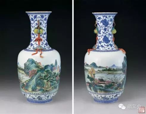 “居仁堂”瓷用於在開國大典上贈送賓客和袁世凱自用,都是仿琺瑯彩和粉彩器物。既有乾隆琺瑯彩和粉彩的富麗,又很有民國風味,多為日用器具和瓶類。如圖一粉彩山水三果雙耳瓶,這種白地施彩,瓶口至肩部以及腹下部分飾青花圖案,腹部繪山水人物圖案,頸部飾耳,是典型的民國瓶類瓷器風格,然而,此瓶釉質潔白無睱,描繪精緻入微,不是一般民窯所能達到的,頗似“內庭恭造之式”。2005年12月12日在北京翰海的拍賣會上以57.2萬元成交,創下了洪憲瓷的拍賣紀錄。