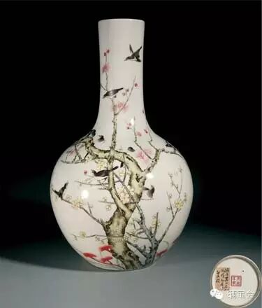 圖十粉彩“喜鵲登梅”圖大錐把瓶