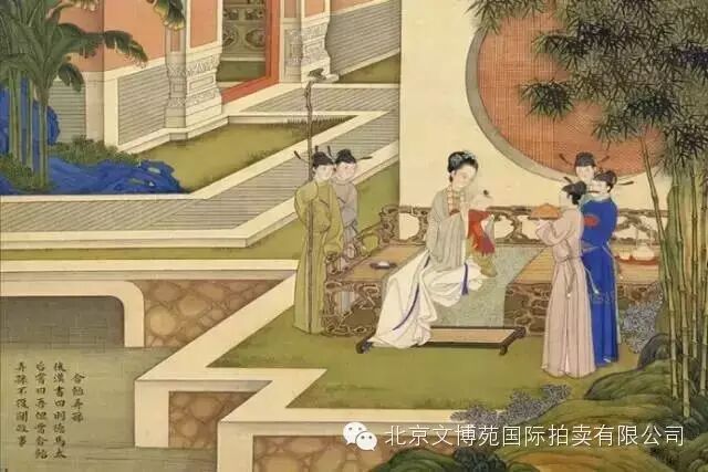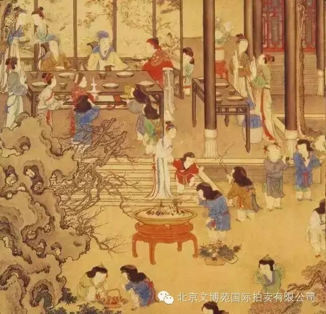 畫中所展示的景物,特別是家具,圖中有數件精美的皇室紅木家具,包括平頭條案、方幾、古凳、無不彰顯著皇家高貴奢華的氣質,與宮廷紅木家具的特點、而在外形來識別為典型的明式家具。