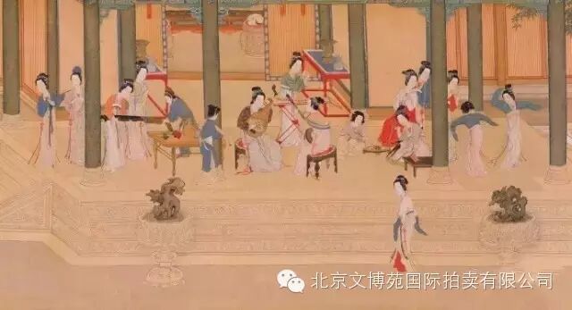 明 仇英《 漢宮春曉圖》——條案、桌、椅、凳等