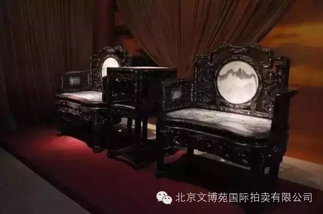 清紫檀木嵌寶鑲大理石桌椅