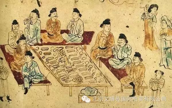 唐周昉《宮樂圖》——畫中餐桌踢打渾厚,裝飾華麗。貴婦們座下是月牙凳,凳面略有弧度,符合人體工學