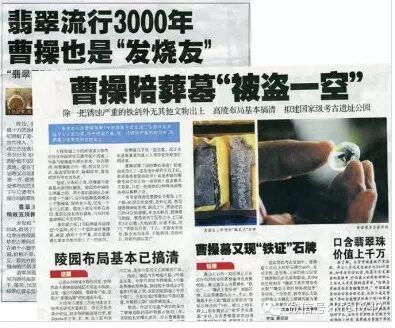 “這個翡翠珠是含在曹操嘴裡的翡翠珠。”還從2號墓牆壁的長釘上看見了帳幔絲線纏繞的痕跡。為什麼說是曹操下葬時含在嘴裡的珠子呢?知情者進一步解釋說,其他所有從曹操墓出土的珠子都帶有穿孔,只有這個翡翠珠沒有任何穿孔,由此專家推斷其他珠子為配飾物上所用,翡翠珠為曹操下葬時口含。