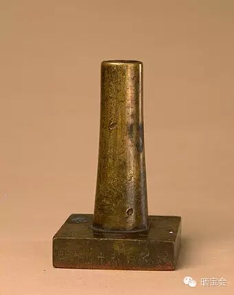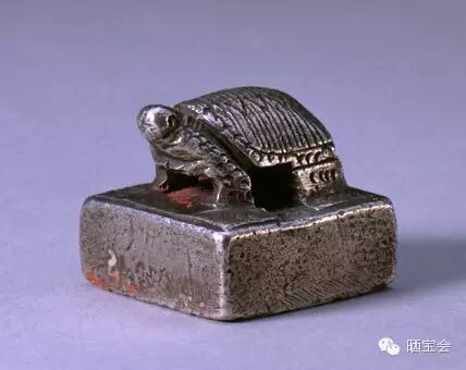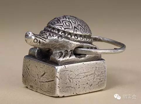 “安西將軍章”印,北朝,印面2.8×2.8cm,通高3.7cm印銅鑄,鎏金,龜鈕,印文白文,為漢篆字體,右上起順讀。此印雖為鑿刻,但印文較整齊率直,印台高厚,印鈕之龜身四足撐立,龜首前伸,背甲邊緣突出,為北朝官印之典型形制。