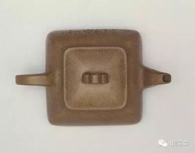 宜興窯玉麟款紫砂覆斗式壺,清末,高7.5cm,口徑5.7×5.7cm,底徑9.8×9.8cm。