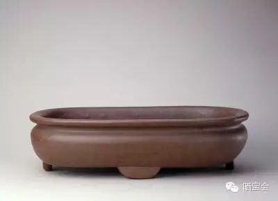 宜興窯紫砂橢圓花盆,清初,高13.5cm,口徑51.5×35.5cm,底徑45.5×27.5cm。