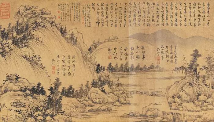 乾隆在遊覽富春山的時候,每走到和畫里相同的位置,興之所至,就在上面提筆詠懷,於是這幅畫就變成了這副模樣。