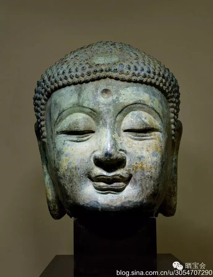 此尊釋迦牟尼佛銅首像,面龐豐滿勻稱,螺形肉髻輕微聳起,彎眉柳目,目光下視,神情慈祥,高鼻垂耳,雙唇飽滿,嘴角露祥和之微笑,儀容端莊,造型水平極高。整件佛首像表面細膩光潔、細節處理到位,銅質極佳,皮膚質感光潔細膩,佛首當使用失蠟法鑄造完成。