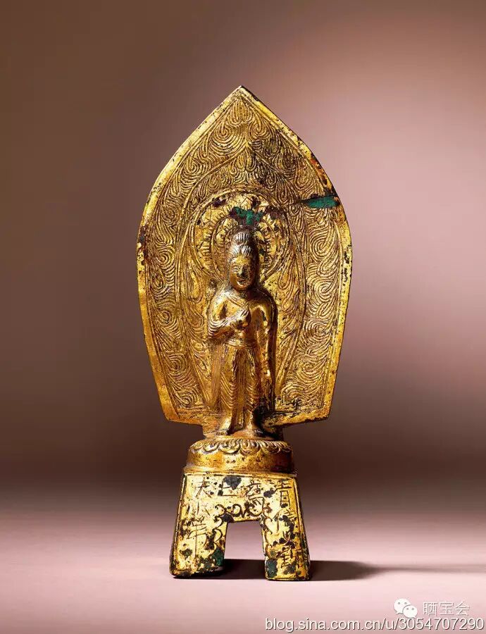 東魏此類造型的佛像及觀音像,以太和時期最盛,常見於石雕造像,造型亦鏗鏘有力,古拙而厚重,舟形背光雕刻細密,層次清晰,內容豐富,將忍冬、蓮瓣、火焰等紋飾以線條陰刻的方式整齊排列,有極強的時代風格,主尊佛像帶有鮮明的東魏造像風格,衣褶層層迭迭做尖錯形,領圈下微作桃尖,極為細緻的將翩翩飛舞之衣紋刻畫清晰,當屬時代風格之代表。