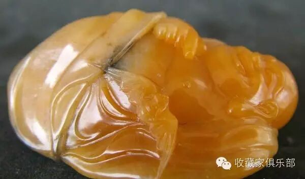田黄的品质高低优劣一般以“六德”作为标准,即细、结、温、润、凝、腻。上品的田黄,可集凝结、脂润、通透、纯净、细腻为一身,宝光四溢。握于手中,如同婴儿的肌肤,又似去了壳的熟鸡蛋,温纯深润。平时即使不加养护,也能保持油润,无干燥之虑。同时,上品的田黄,纹理要美,格路要少而浅淡,如带皮质层,应求薄而质细为佳。